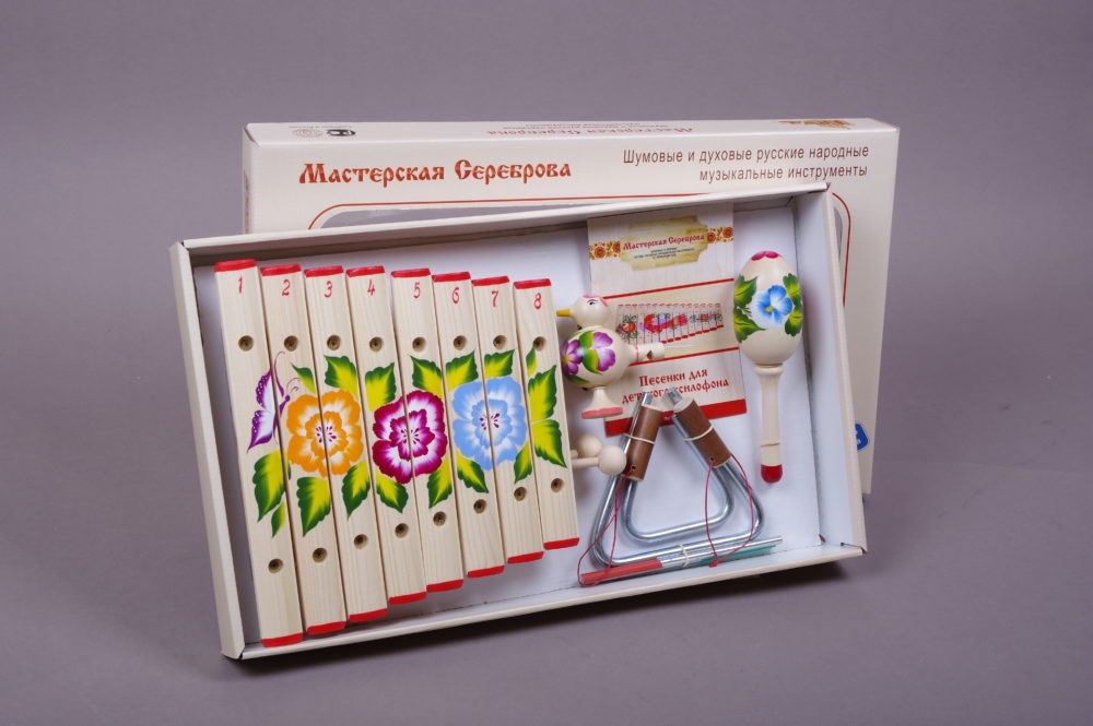Интересный вариант музыкальных подарочных комплектов с ксилофоном для детей.
