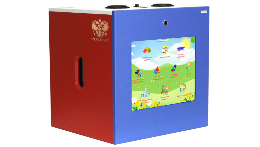 Благодаря оригинальной запатентованной конструкции и небольшим габаритам, этому комплексу патриотического воспитания найдется место в любом, даже в самом маленьком уголке ДОУ или школы. Куб оснащен антивандальным сенсорным монитором и может быть установлен для занятий на столе или на полу (экраном вверх).