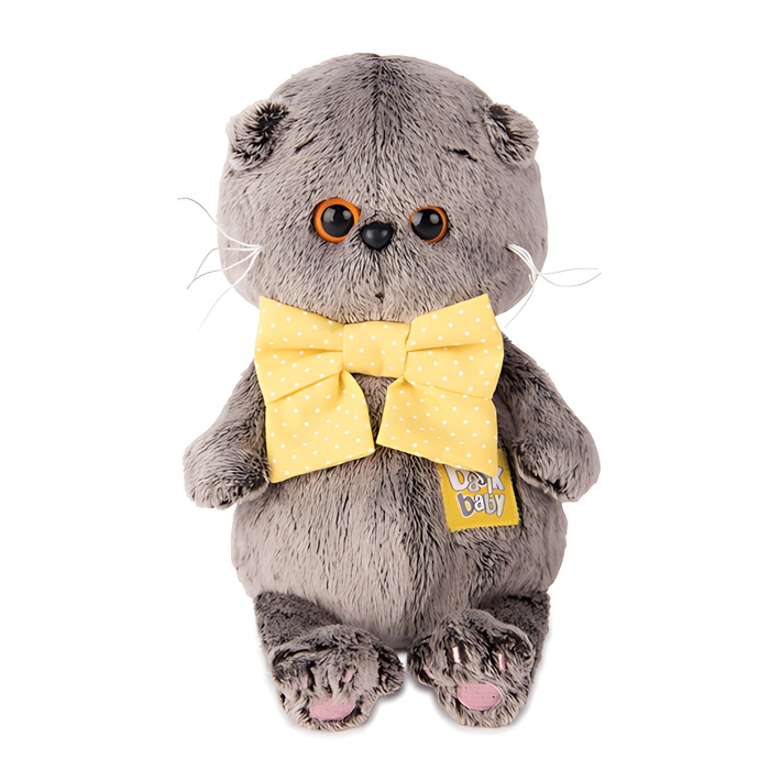 Игрушка сделана из искусственного меха, плотно набита полимерным волокном. Поэтому Басик не вызовет аллергии, не полиняет и не будет точить когти о диван.