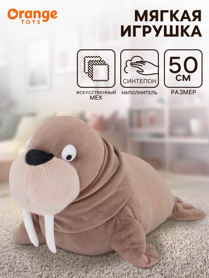 - Игрушка выполнена в виде большого моржа с мягкой и приятной текстурой.