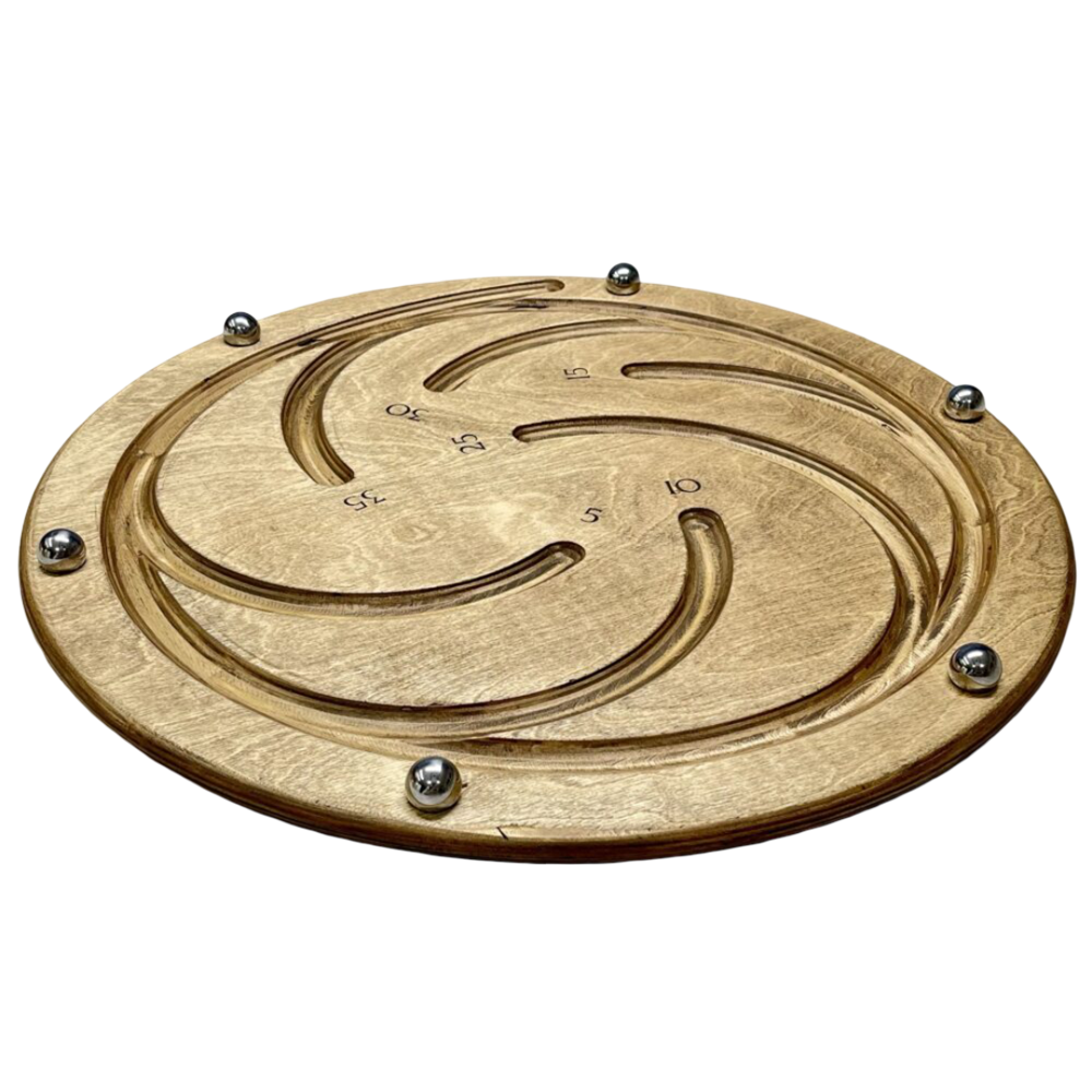 Игрок в свой ход запускает по очереди 6 шаров по спирали. Затем суммирует сумму полученных балов и передает ход другому игроку.