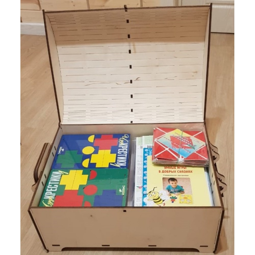 Комплект содержит набор пособий для группы из 10 человек для реализации парциальных программ «Умные игры в сказках для малышей» (3 - 5 лет), «Умные игры в добрых сказках» (5-7 лет), «Умные игры в сказках для мам» С.В. Макушкиной в упаковке «Сундучок сказок» (три программы + USB-флеш с электронными приложениями к программам + 10 наборов игр для детей + набор пособий для педагога + упаковка "Сундучок сказок (дерево)