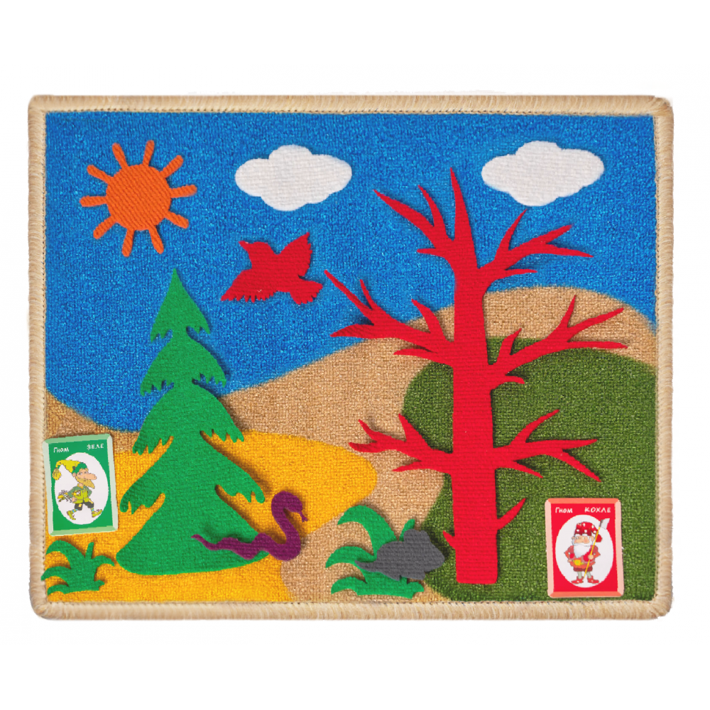Многофункциональный, экологичный, безопасный развивающий коврик для моделирования обучающих ситуаций. Способствует освоению детьми сенсорных эталонов (цвет, размер, форма), формирования математических понятий, научно-естественных представлений об окружающем мире, развитию творческого воображения и всех сторон речи. Съёмные элементы доступны детям для самостоятельного крепления на ковролиновойвой основе, которая может быть как мобильной, так и крепиться к стене стационарно.